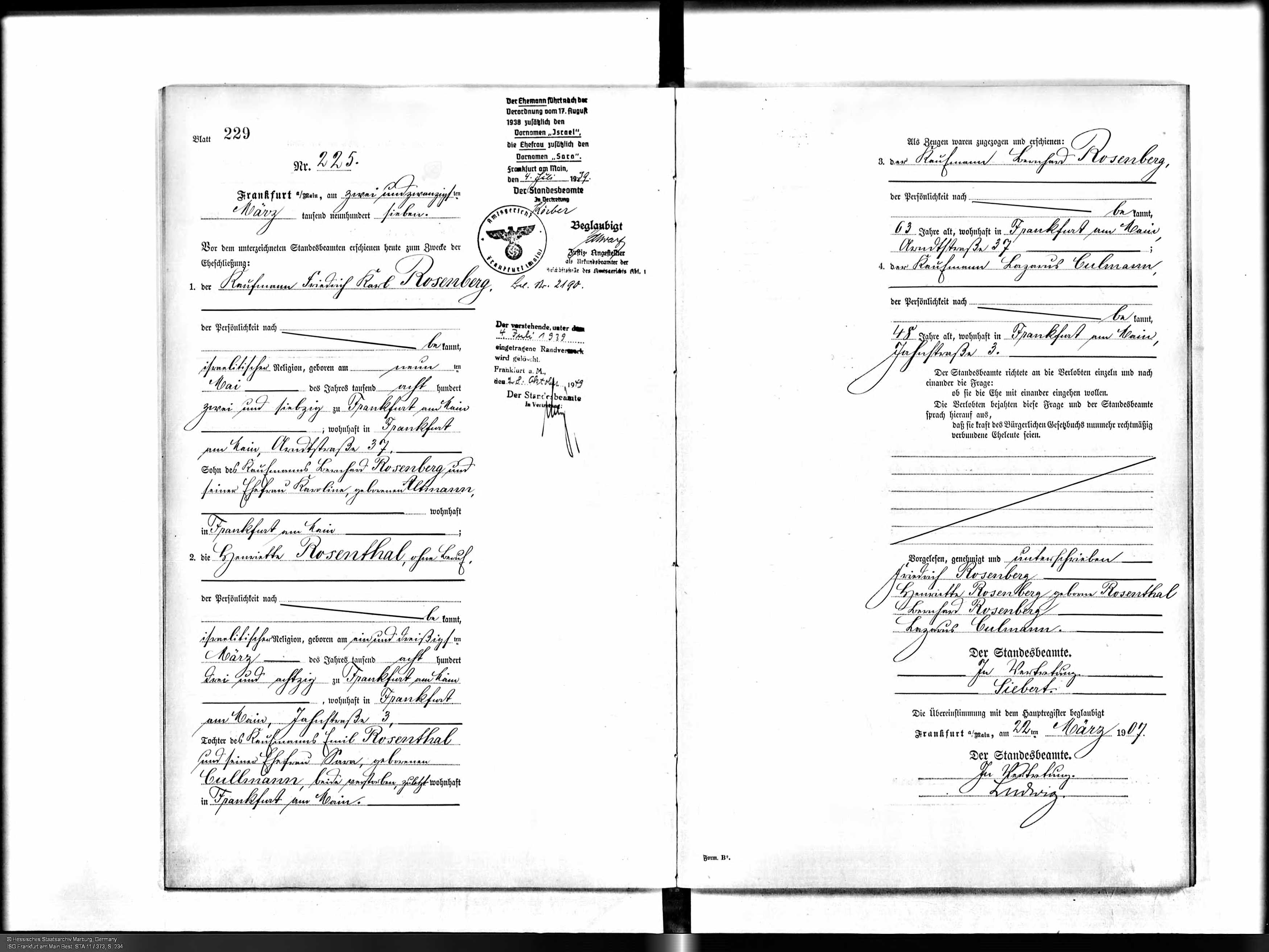 22 MAR 1907; Frankfurt (Main), Hessen-Nassau, Preußen, Germany Ref: [
